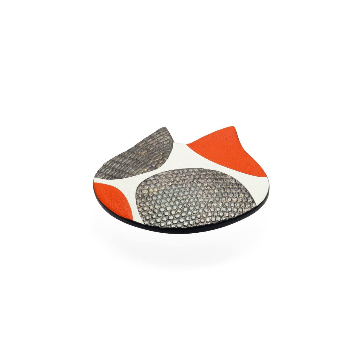 革ブローチ"ミャオ 水玉"<オレンジ色>