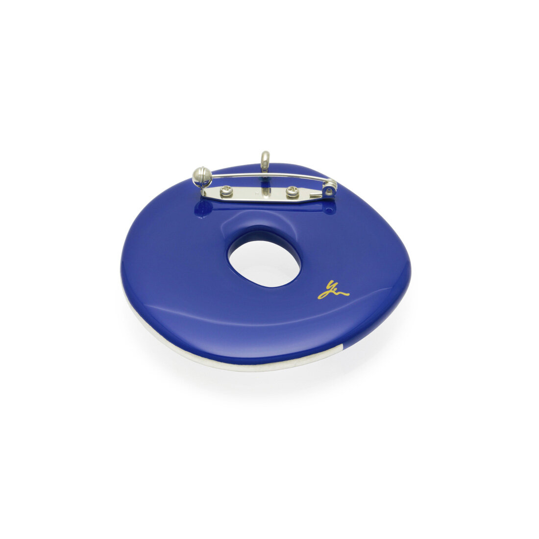 [ 深いブルーが美しい神秘的な花紺色、お花をイメージした胸元を華やかに彩る存在感抜群の蒔絵のブローチ ]