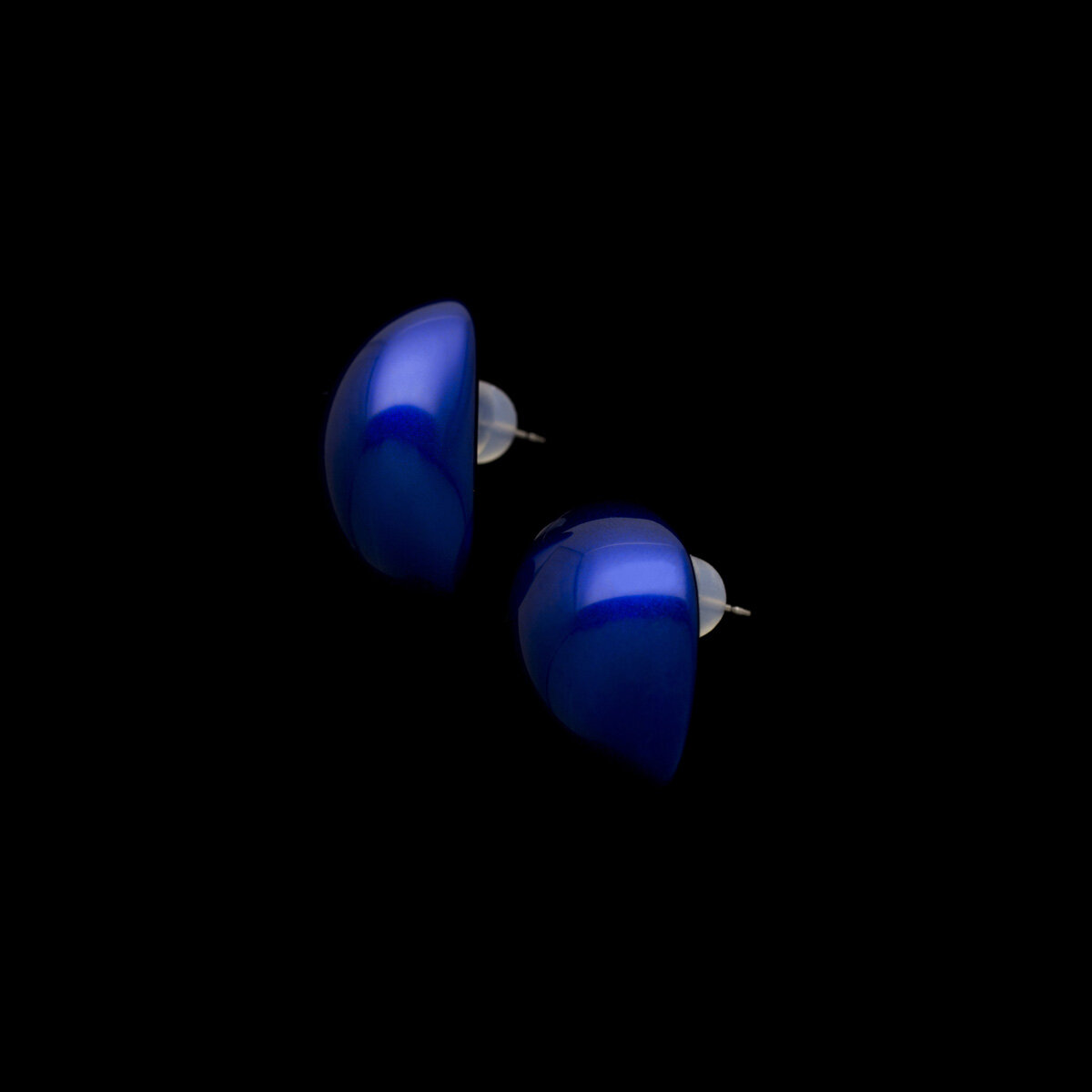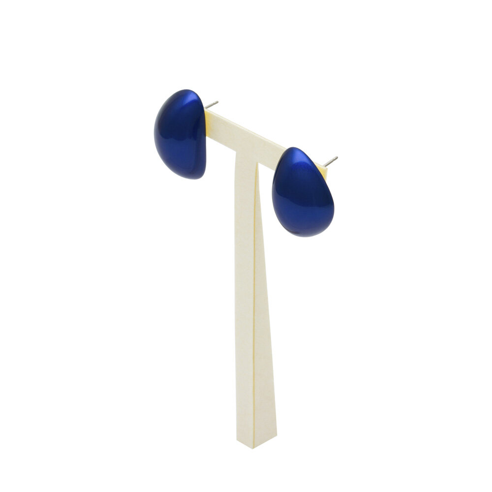 [ 発色の良い上品でクールな印象の艶やかなコバルトブルー、程よいボリューム感と軽さが人気の月の雫ピアス ]