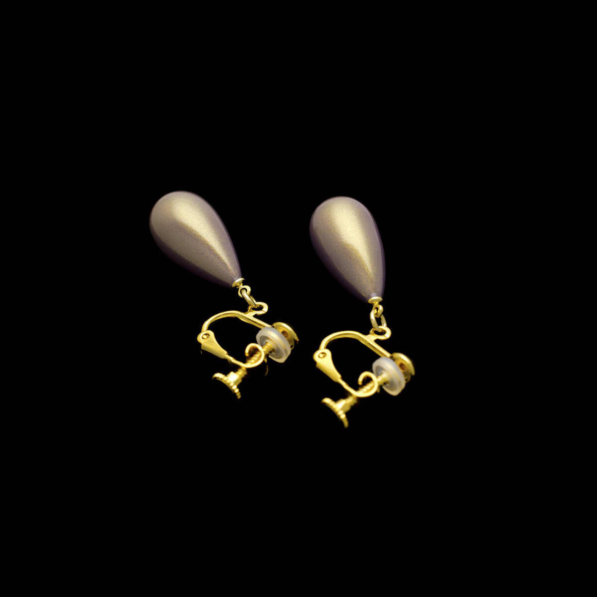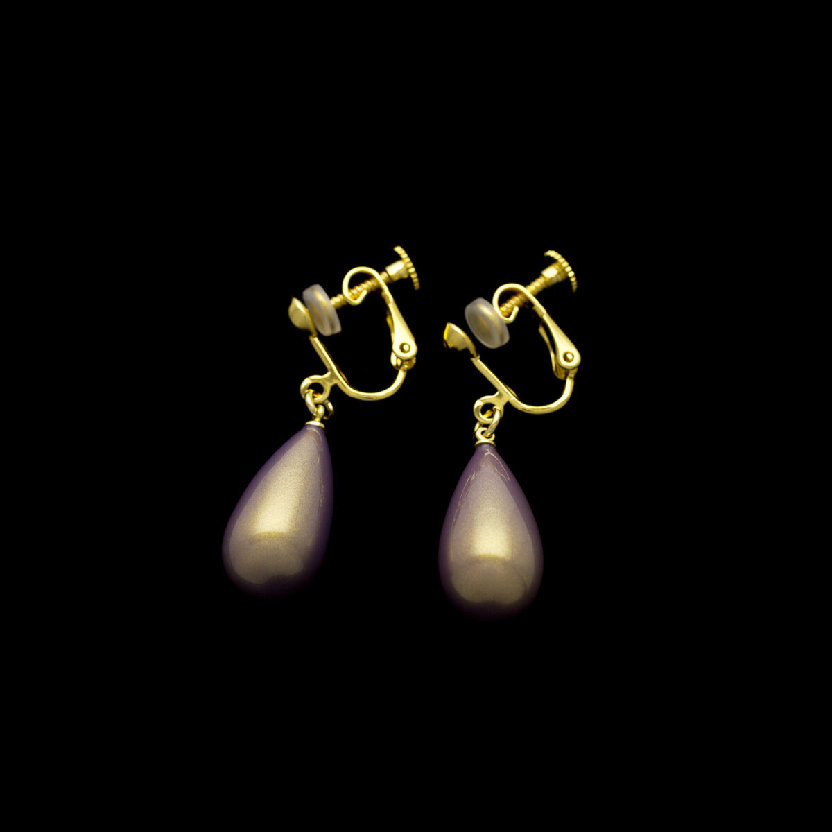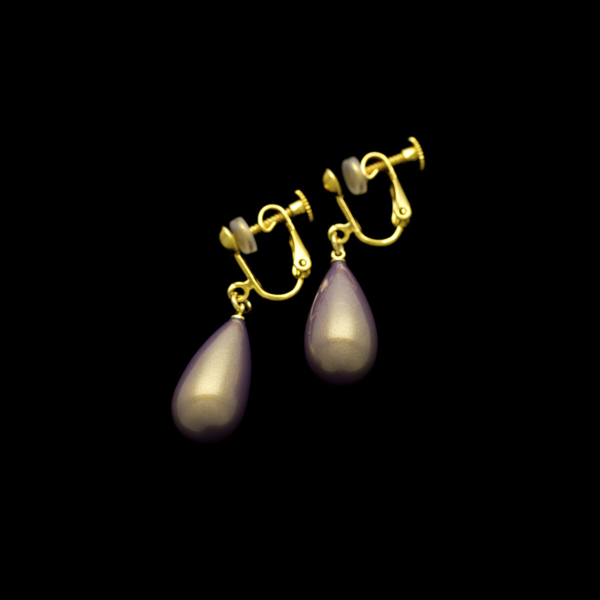 [ 日本人の肌に合う上品なパープルカラーの紫苑金砂色、耳元でゆらゆら揺れる愛らしさが人気の雫型イヤリング ]